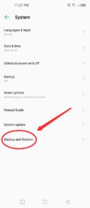 Step 2 : सेटिंग में जाने के बाद आपको उसमे System या additional setting या System Management के अंदर Backup and Restore को ढूँढना हैं।
